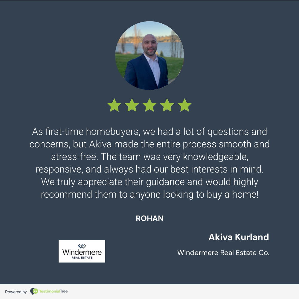 As first-time homebuyers, we had a lot of questions and concerns, but Akiva made the entire process smooth and stress-free. The team was very knowledgeable, responsive, and always had our best interests in mind. We truly appreciate their guidance and would highly recommend them to anyone looking to buy a home!
